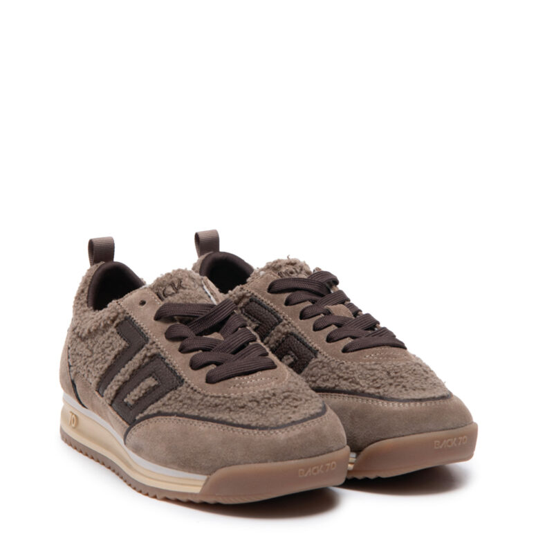 Sneakers Jogger F12 in pelle scamosciata e teddy taupe