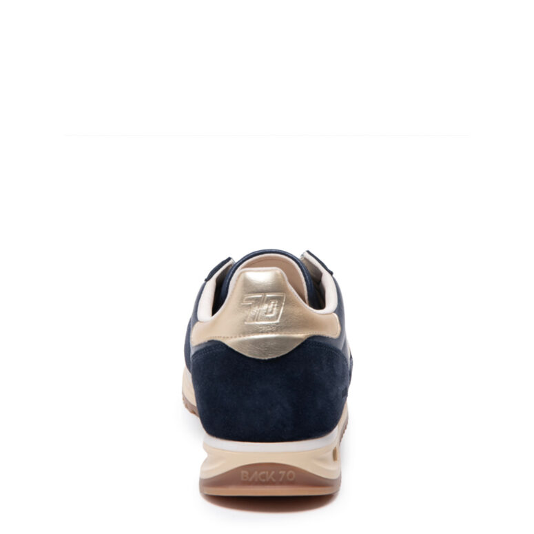 - Logo e linguetta sul tallone in pelle laminata color oro.
