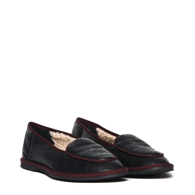 Atlanta leather moccasin with bouclé effect fabric interior