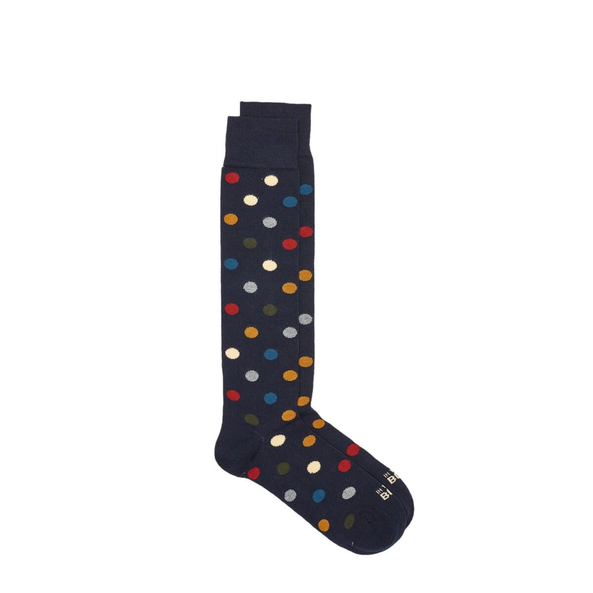 Long blue socks with multicolor polka dots