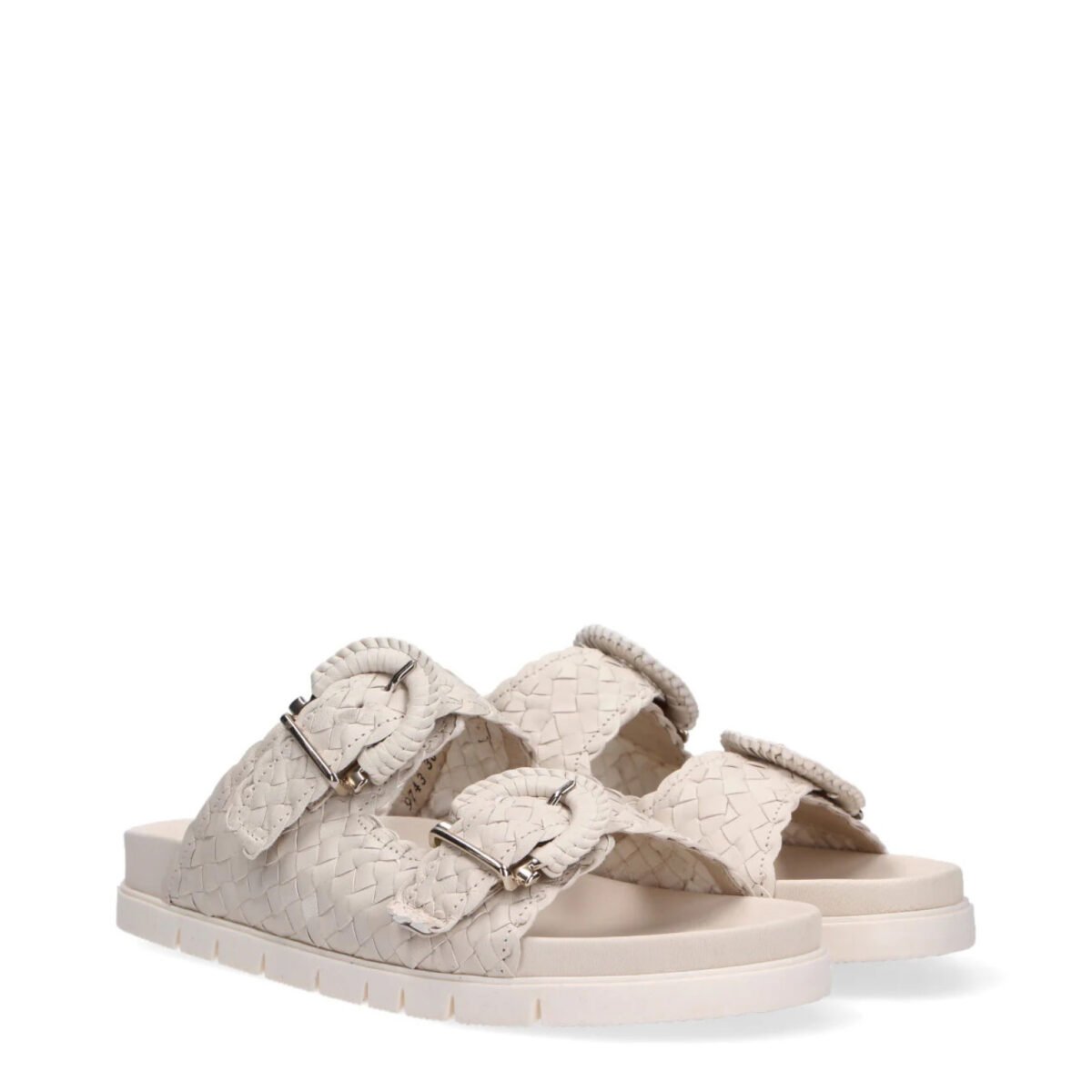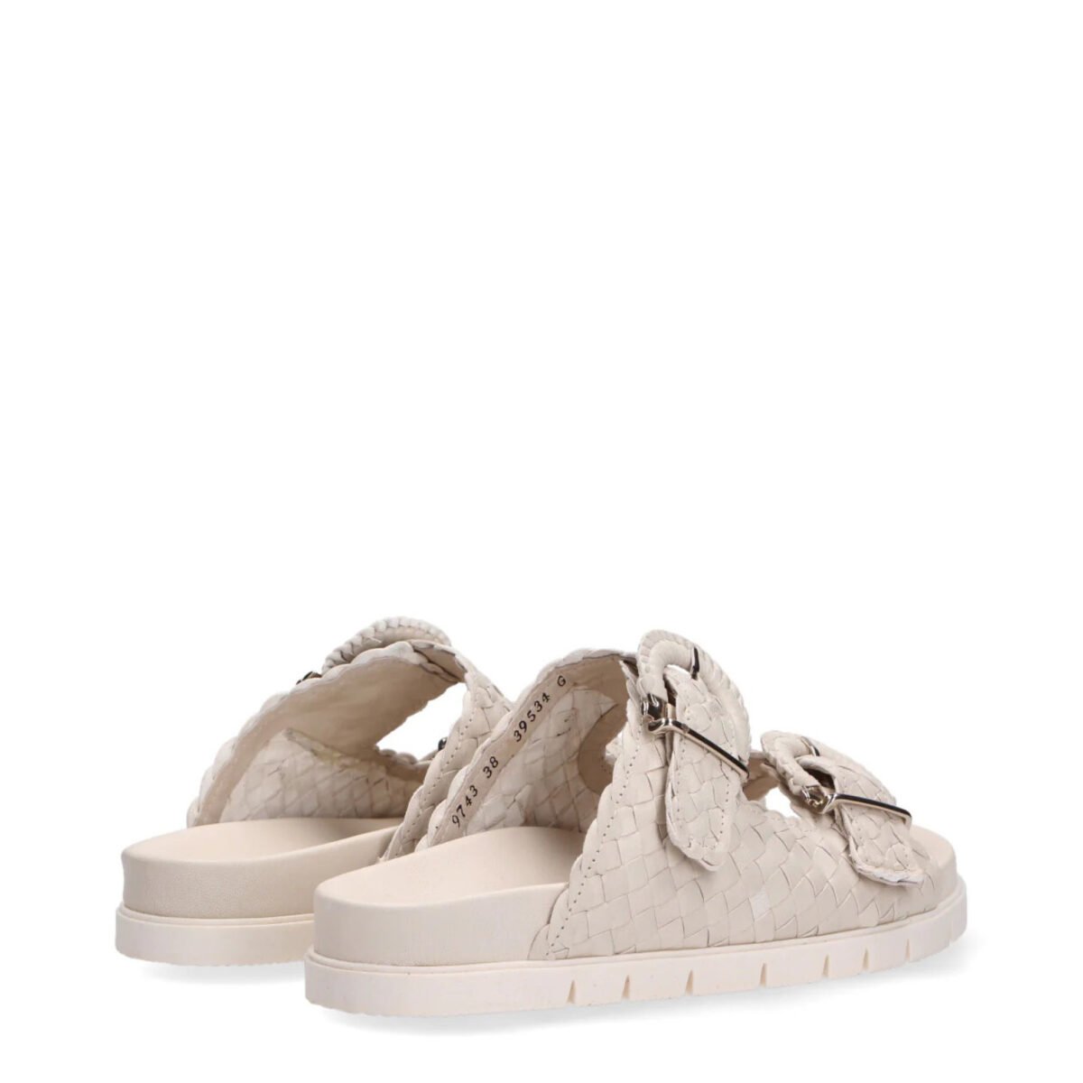 Original price was: 279€.149€Current price is: 149€.Sandalo 10734 in pelle intrecciata beige e bianco