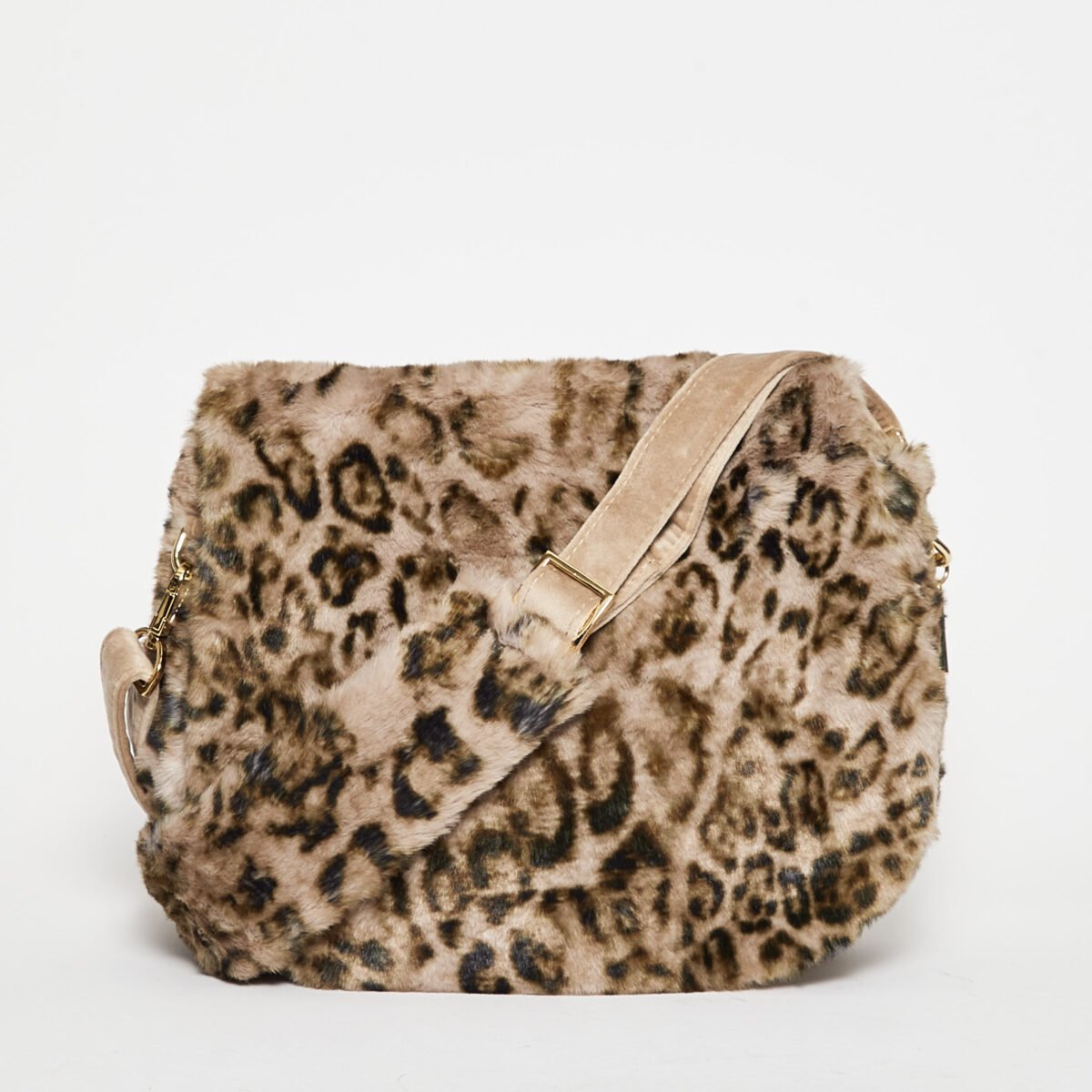 Shoulder bag in spotted faux fur
