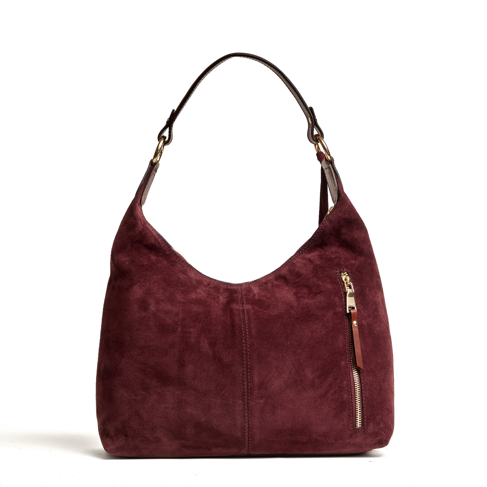 Borsa a spalla V170 in pelle scamosciata bordeaux