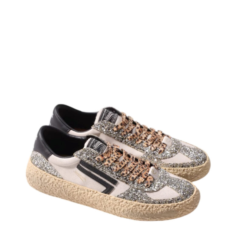 Home / Shop / Woman / New Arrivals / Sneakers Confetti in pelle vegana bianca e glitter platino