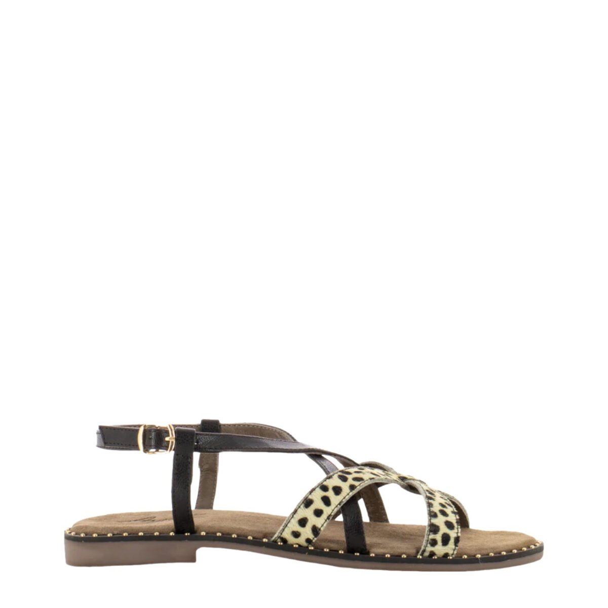 Original price was: 249€.129€Current price is: 129€.Sandalo 9172 in pelle scamosciata nera e pelle maculata