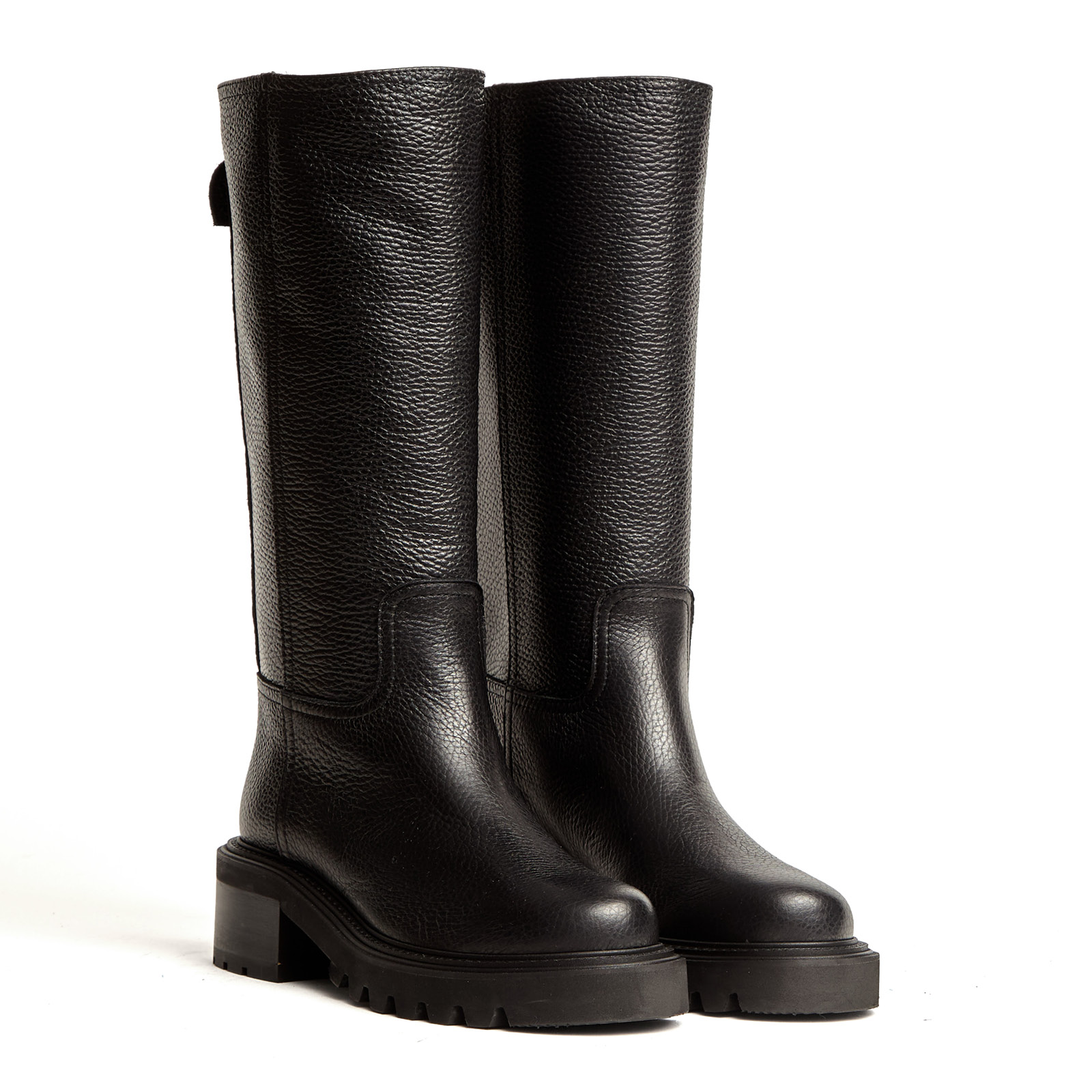 Stivale 4472 in pelle nera bottalata con cerniera posteriore