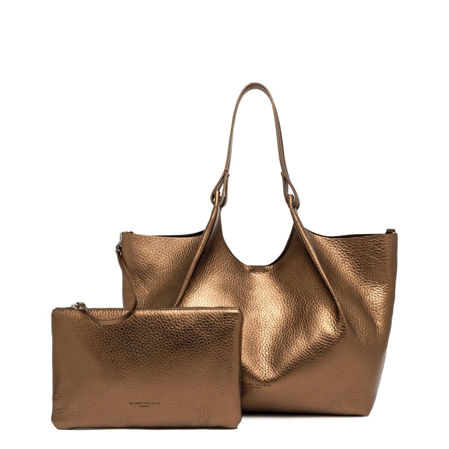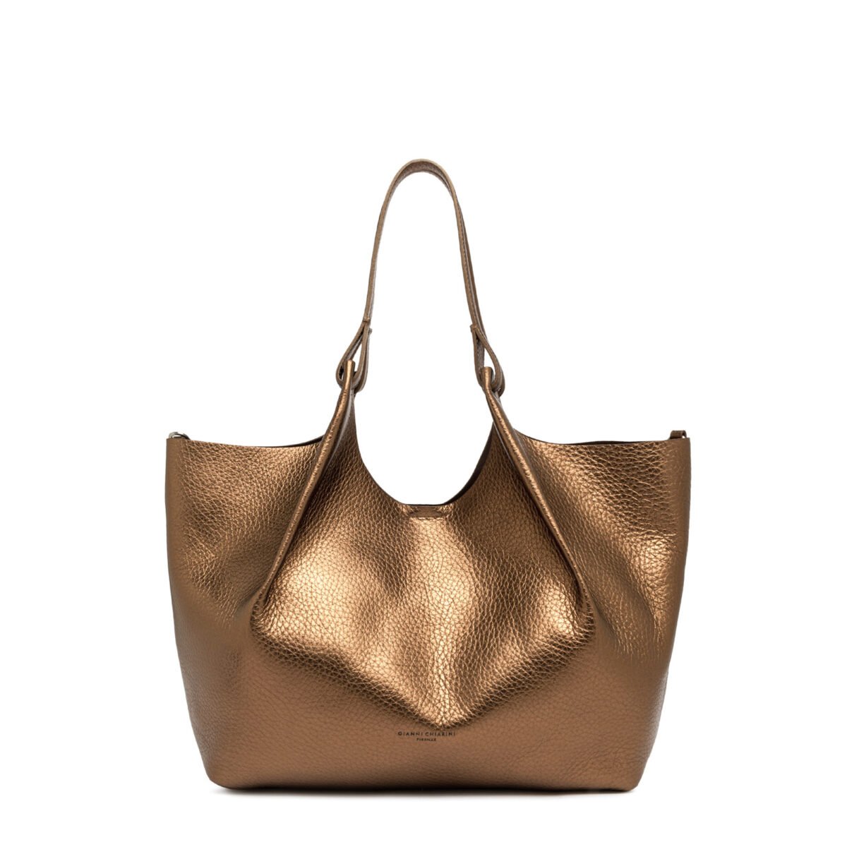 - Profili superiori in pelle martellata e doppi manici in tono.